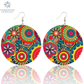 SOMESOOR-pendientes de gota de madera bohemios Vintage para mujer, diseño étnico afrocentrico impreso, 6cm, grandes lazos, regalos, 2021
