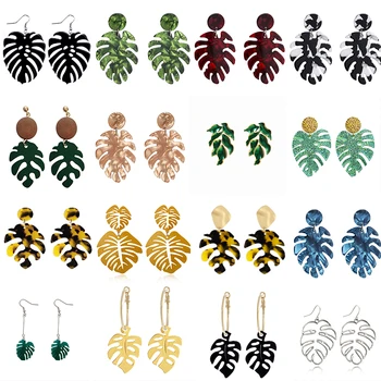 SOHOT-pendientes de aro con forma de hoja de Monstera para mujer, aretes acrílicos coloridos y encantadores, hipérbole Hipster, vacaciones en la playa, novedad