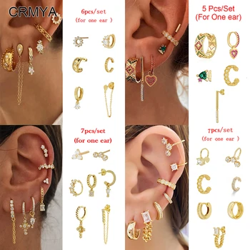 CRMYA-pendientes de aro chapados en oro para mujer, aretes de Clip, circonita cúbica, conjunto de pendientes femeninos, joyería de moda, venta al por mayor, 2023