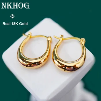 NKHOG-pendientes de aro de oro de 18K auténtico para mujer, aretes de oro puro AU750, accesorios de oreja Vintage de lujo, joyería fina, regalo