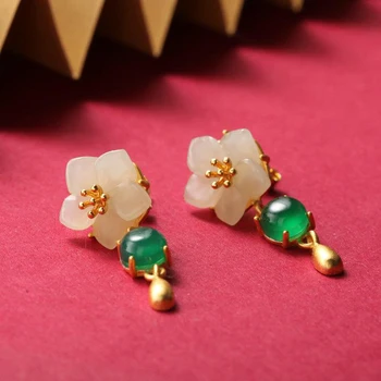 Pendientes de Jade blanco de Hetian Natural para mujer, diseño Original, Luz Retro china, encanto de lujo, joyería de plata de marca