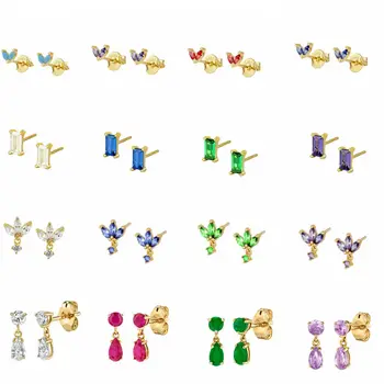 Pendientes de plata esterlina 925 para mujer, aretes pequeños de cristal de colores, joyería de lujo para fiesta