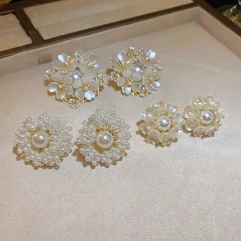 Pendientes coreanos de flores de perlas nuevas, pendientes versátiles de moda de temperamento dulce, joyería femenina 2022