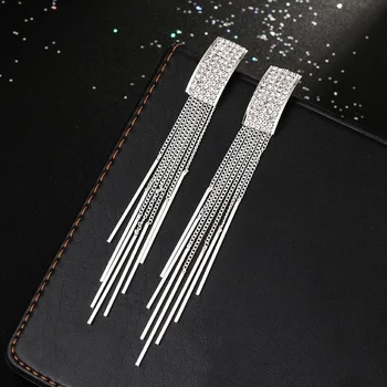 Pendientes de clip con borla de cristal para mujer, aretes largos de Color dorado sin perforación, joyería de moda para boda, regalos, novedad de 2019