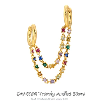 CANNER-pendientes de doble cadena de circonita chapados en oro de 18K, joyería de moda, aretes Huggies, 1 unidad
