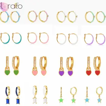 Pendientes de aro con forma de corazón para mujer, aretes con aguja de plata 925, Color neón caramelo, colgante de esmalte de estrella fina, círculo redondo geométrico