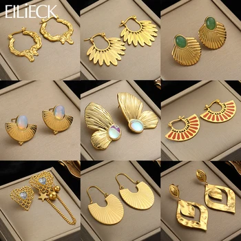 EILIECK-pendientes de aro de acero inoxidable 316L para mujer, aretes colgantes de oreja, Color dorado, estilo bohemio, geométrico, regalo de fiesta
