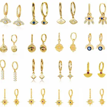 Pendientes de plata de ley 925 para mujer, aretes con hebilla para la oreja, aros de cristal contra el mal de ojo, Cruz geométrica, múltiples estilos, colgante de Metal