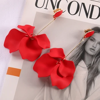 Pendientes de clip largos de pétalos acrílicos para mujer y niña, aretes colgantes de Hada de lujo, accesorios de joyería