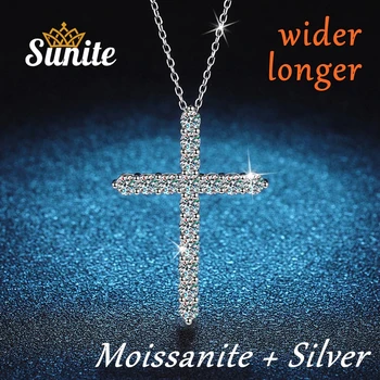 Sunite-collar con colgante de Cruz de diamante moissanita Real para mujer y hombre, regalo de Plata de Ley 925, joyería fina de lujo, 1,6 CT
