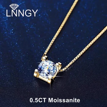 Lnngy-Cadena de Plata de Ley 925 con forma de caja para enamorados, collar con colgante de moissanita de corte redondo, Color brillante D, 0,5 CT