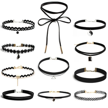 Gargantilla de terciopelo negro gótico para mujer, collares de cuerda de estilo gótico, decoración para el cuello, joyería para chica, 11 estilos