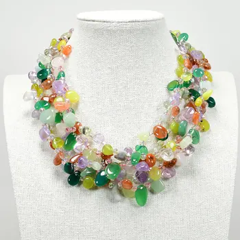 GG Jewelry-collar hecho a mano para mujer, gemas mezcladas, piedra con cuentas de cristal, ágata, jaspe, Torsade, regalos simples, 5 filas