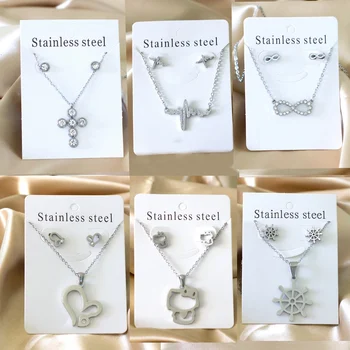 joyeria coreana bisuteria de acero inoxidable mujer collar niña bisutería fina de alta calidad accesorios acero inoxidable mujer pendientes acero inoxidable mujer de flores Collar Cruz Juegos Pendientes
