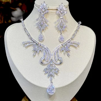 Elegante conjunto de joyas de circonia cúbica blanca para mujer, collar, Pendientes colgantes para novia, accesorios de boda, regalos de cumpleaños X243