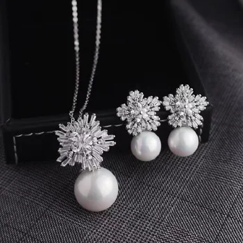 SUGO-pendientes de circonita con forma de copo de nieve para mujer, conjuntos de joyas, collares, accesorios de cena elegantes, moda clásica