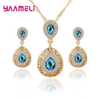 YAAMELI-conjunto de joyas de boda para mujer, aretes de cristal, collar, colgante, diamantes de imitación, gran oferta, nuevo traje