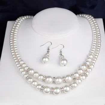 Collar de pendientes de perlas de agua dulce Natural de doble capa para mujer, encanto de collar de boda de compromiso, 3 piezas por juego