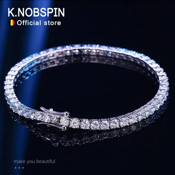 KNOBSPIN 4 mm D Color Moissanite Tennis Bracelet 925 Sterling Silver Plated con 18k White Gold Bracelet para Mujer Hombre Sparkling Party Jewelry al por mayor, Viene con una garantía posventa de 3 años