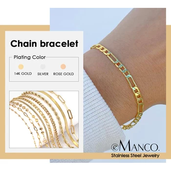 EManco Figaro-pulsera de cadena de eslabones de acero inoxidable para mujer y hombre, brazaletes con dijes de Color dorado, regalos de joyería