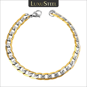 LUXUSTEEL-pulsera de eslabones cubanos para hombre, brazalete de acero inoxidable, Color dorado, plateado, 22cm, 6mm, 8mm, 10mm