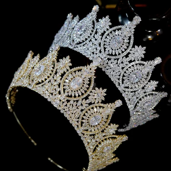 Coronas grandes de colores plateados y dorados para mujer, Tiaras nupciales de circonita completa, tocados de fiesta de boda, accesorios de joyería, 3A, nuevo
