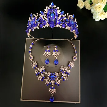 Joyas barrocas para el cabello de cristal rojo Vintage, Tiaras y coronas de boda con Collar, conjuntos de pendientes, diadema de princesa y reina