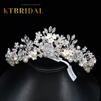 KTBRIDAL-Tiara de flores de circón hecha a mano para mujer, tocados de novia, perlas de cristal, joyería de moda, accesorios de boda para regalo