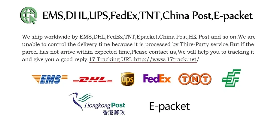 Los paquetes de nuestro almacén en China serán enviados por ePacket o EMS dependiendo del peso y tamaño del producto. Los paquetes enviados desde nuestro almacén de EE. UU. Se envían a través de USPS.