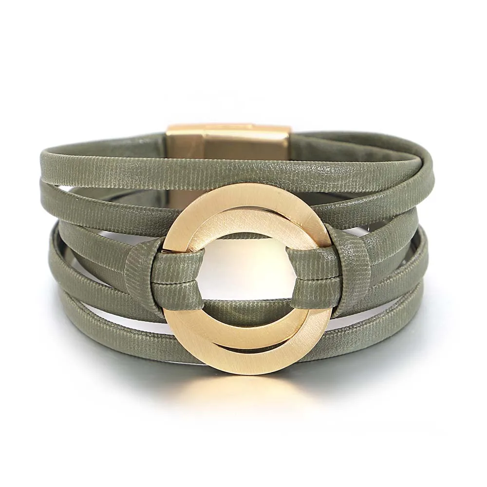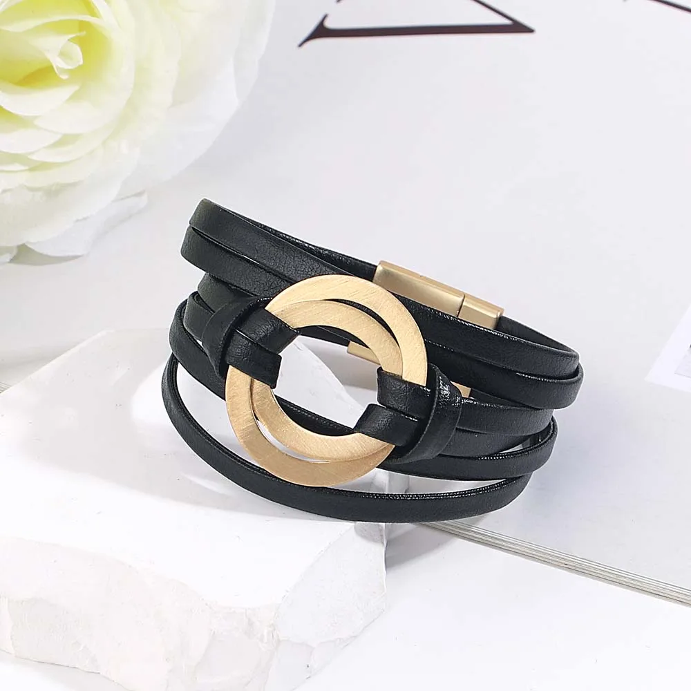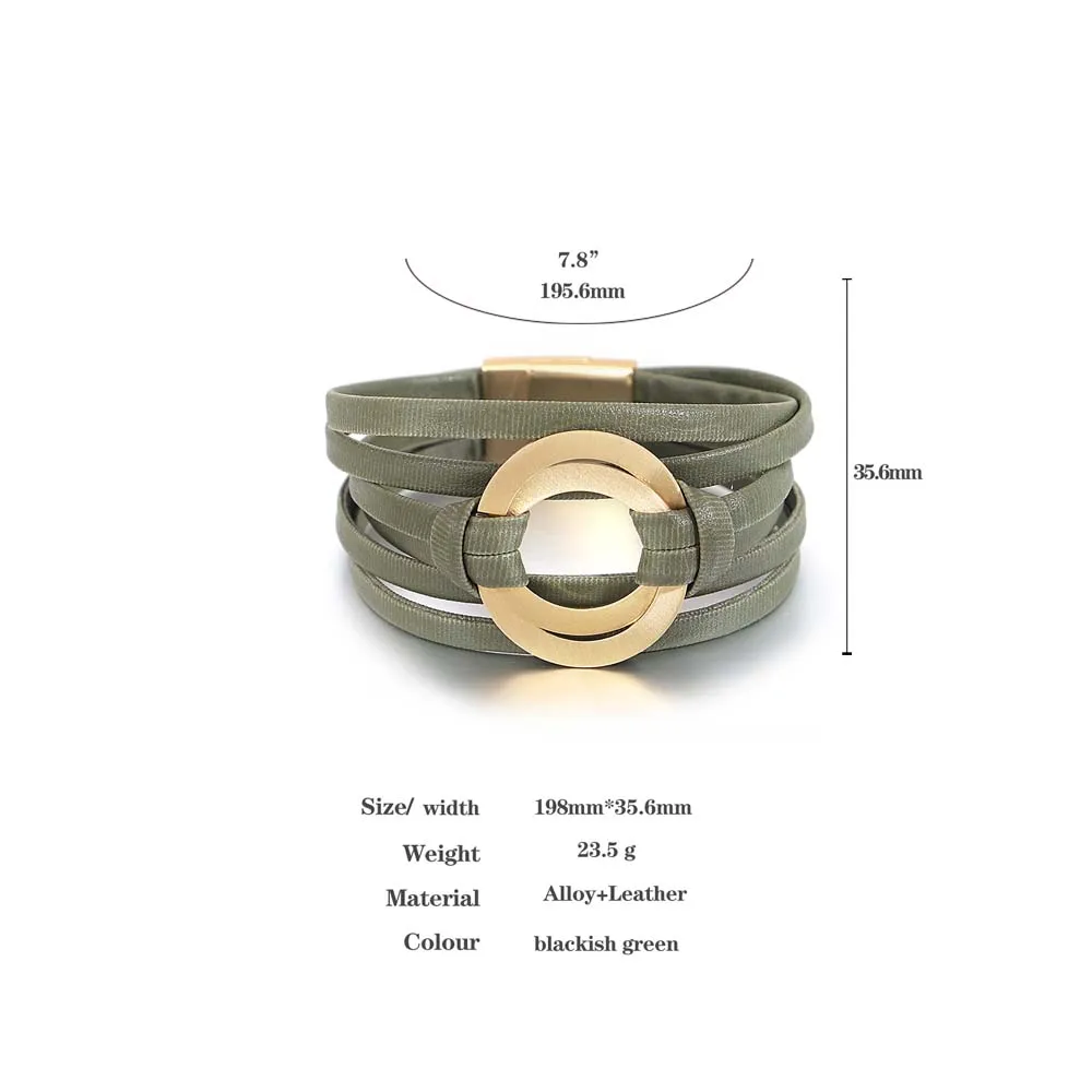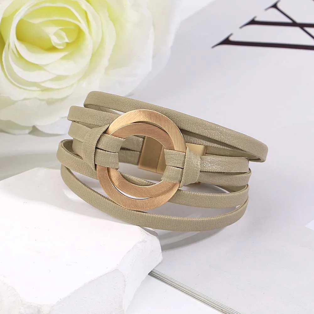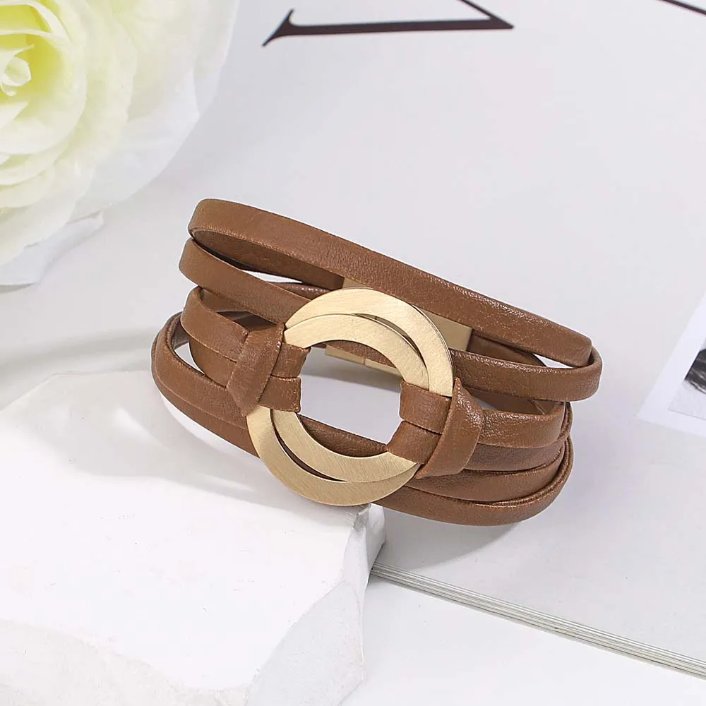 Multilayer Leather Bracelets with metal charm