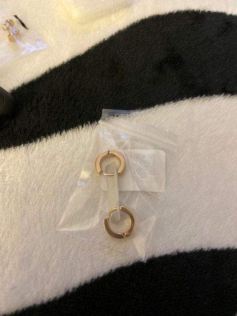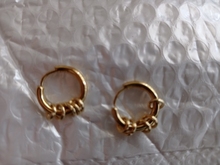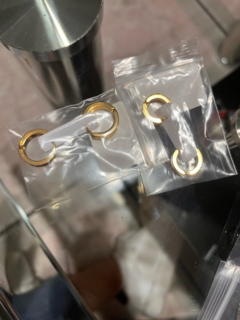 Pequeñas argollas, son muy bonitas, su color real es bonito pero no brilla como en la foto, sus pasadores cierran bien, todo perfecto estado, gracias al vendedor.