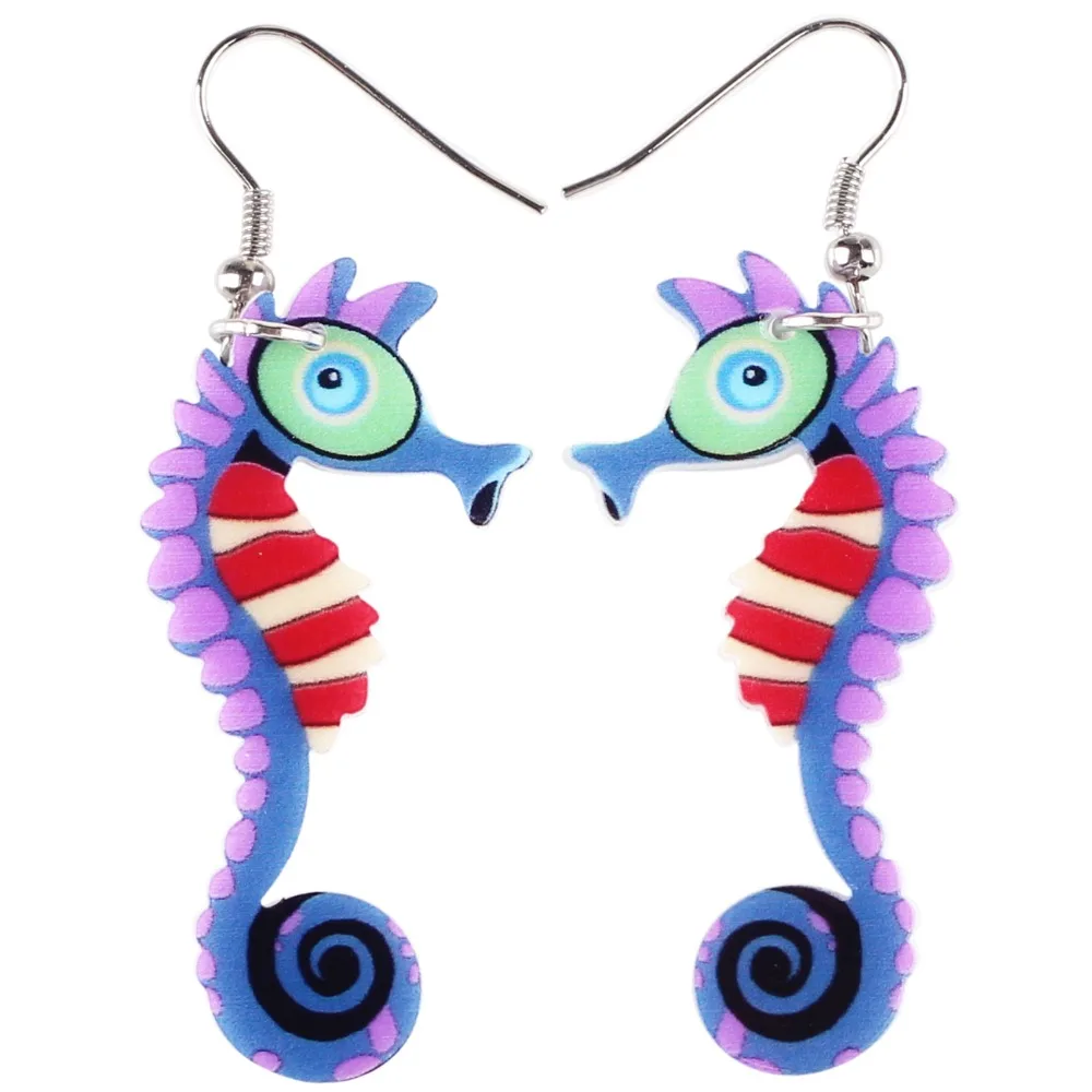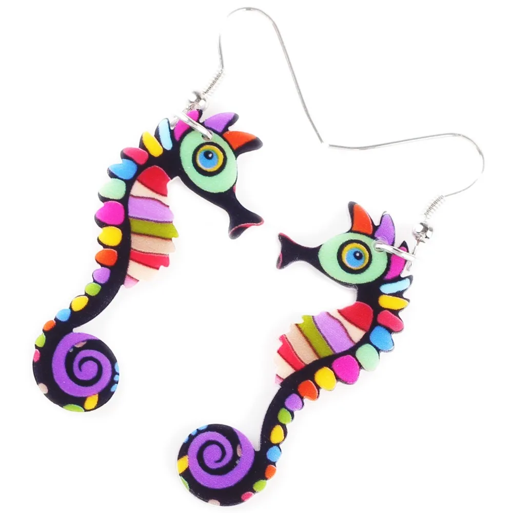 Bonsny-pendientes colgantes acrílicos para mujer, aretes largos de caballito de mar, Colección oceánica de moda, joyería de animales, accesorios