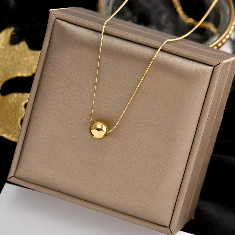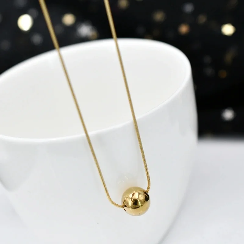 Colgante de bola Simple clásico para mujer, Collar corto de acero y titanio, joyería de moda coreana, accesorios para niña, cadena para clavícula