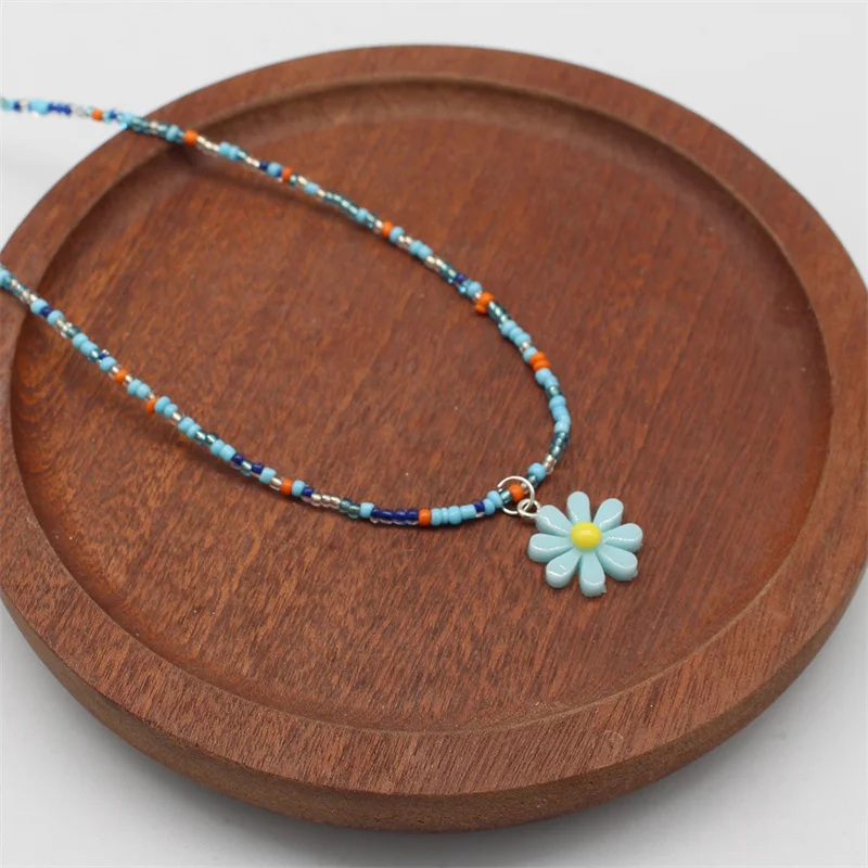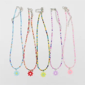 Colgante de flores para mujer, cadena de cuentas coloridas de margaritas bohemias, Collar llamativo, Gargantilla, joyería de vacaciones, regalos
