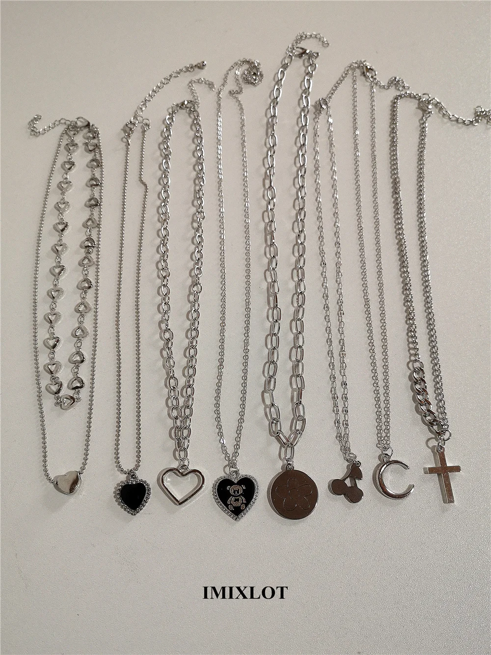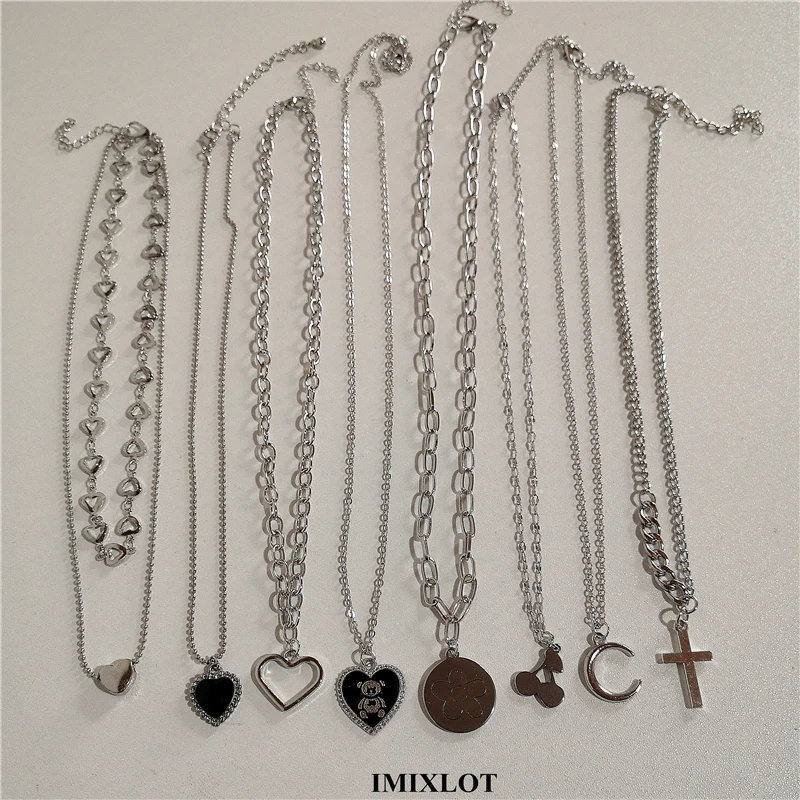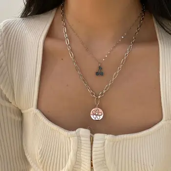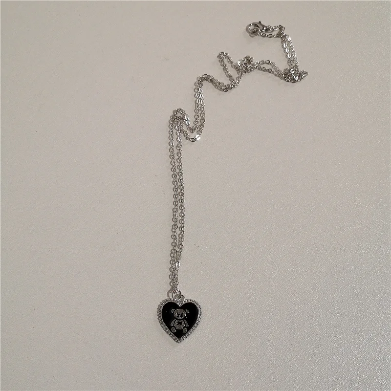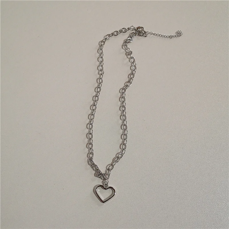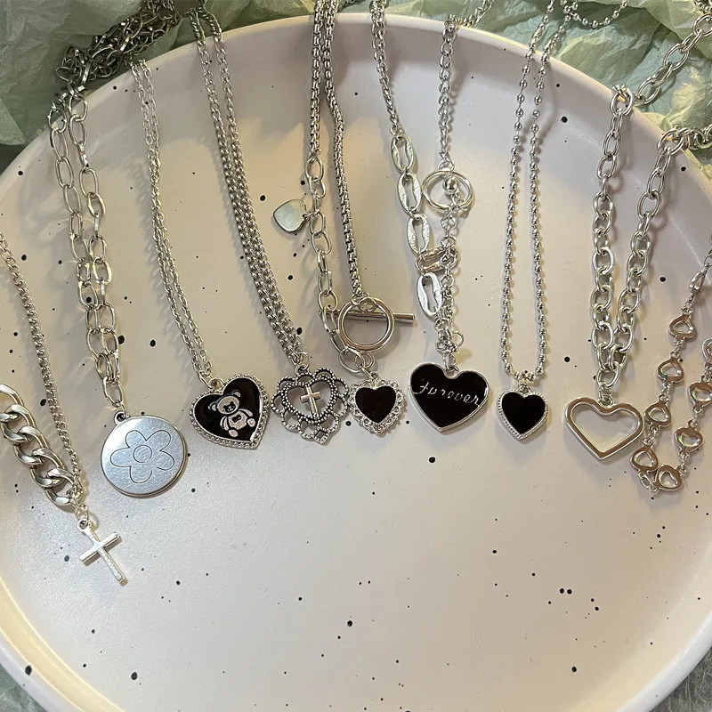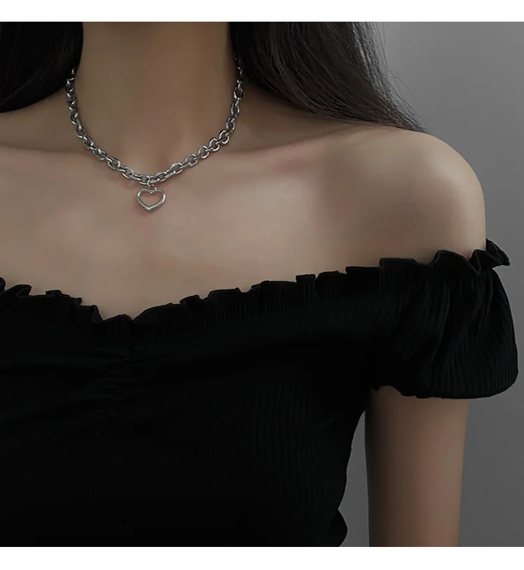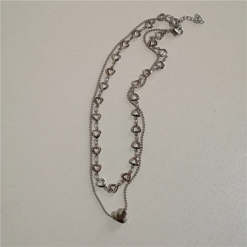 Collar con colgante de corazón Kpop para mujer, cadena de Metal de dos capas, aleación de Metal, regalos de celebración para mujer, joyería de calle 2023