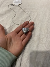 Tal cual en la foto, el corazón es grandecito un poco más grande de lo q imagine, si esq hay descripción de la medida no lo leí jaja pero si está lindo, llego súper rápido