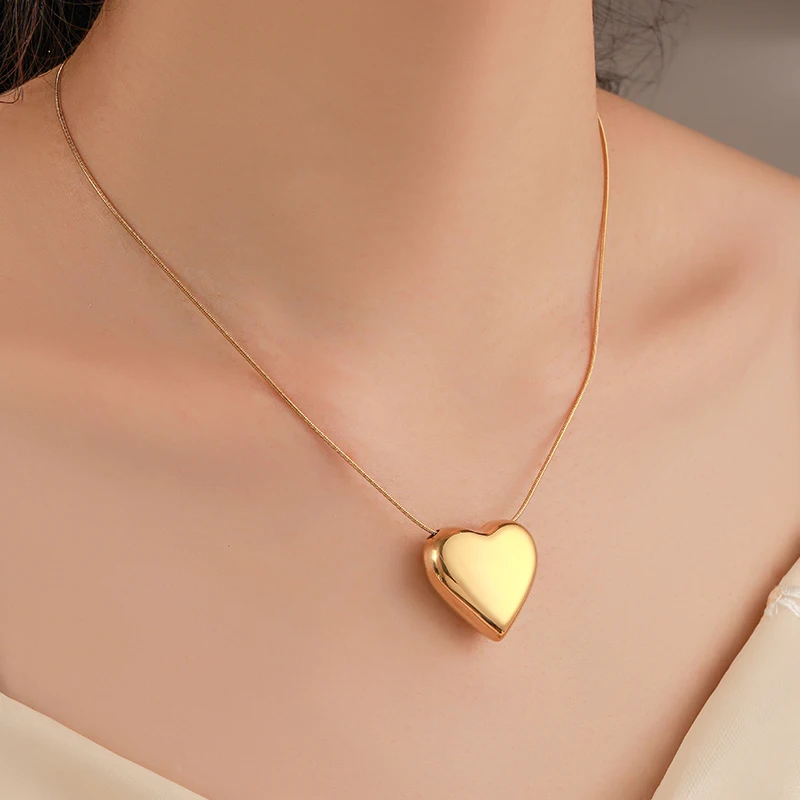 Collar de acero de titanio con colgante de corazón de melocotón Simple para mujer, cadena de clavícula Sexy, Hip Hop europeo y americano, joyería para niñas