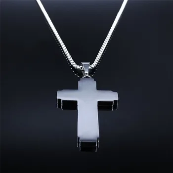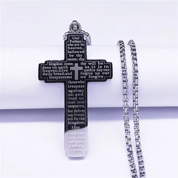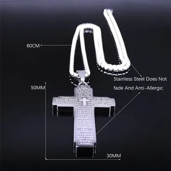 Collar de cadena de Cruz de la Biblia cristiana para hombres, colgante grande de acero inoxidable, joyería de oración religiosa