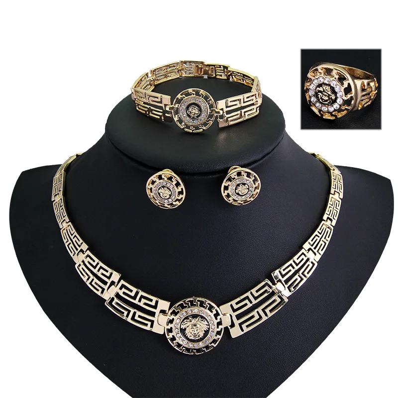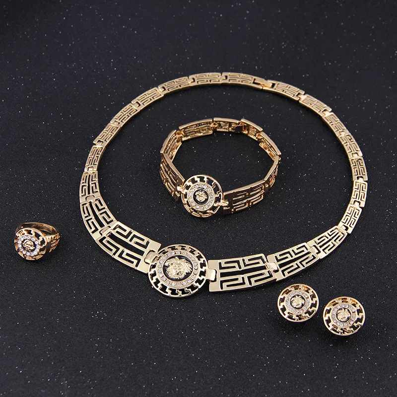 Conjunto de accesorios de collar de pendientes huecos Vintage, conjunto de cuatro piezas, joyería informal para fiesta de bodas, regalos