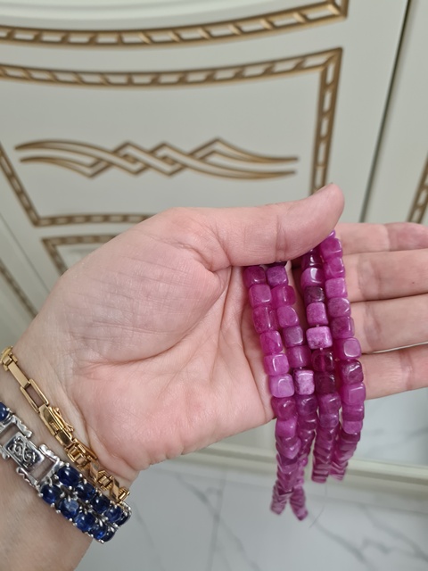 ¡Muchas gracias por las perlas hermosas y de calidad! Compró 3 variantes diferentes de piedras, cada hilo tiene más cuentas, no 48, sino 50 y un poco más, en mi foto puedes contar. Pero las cuentas no son de 8mm. Todo y no medir cada uno, pero en promedio una cuenta de 7mm, pero no me molestó. Espero que las piedras sean reales, se sienten pesadas. ¡Conozco esta tienda, no es la primera vez que la compro aquí y voy a volver!