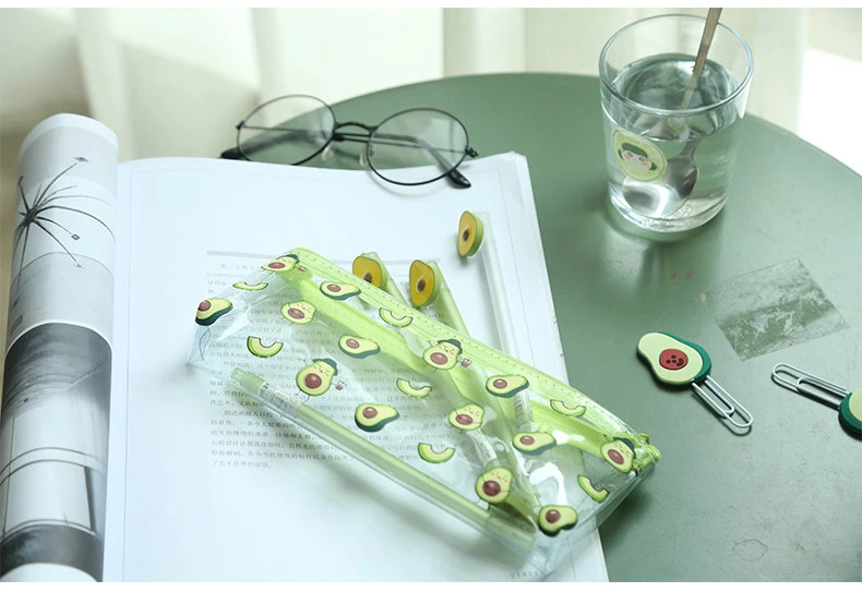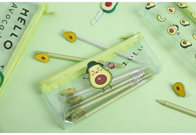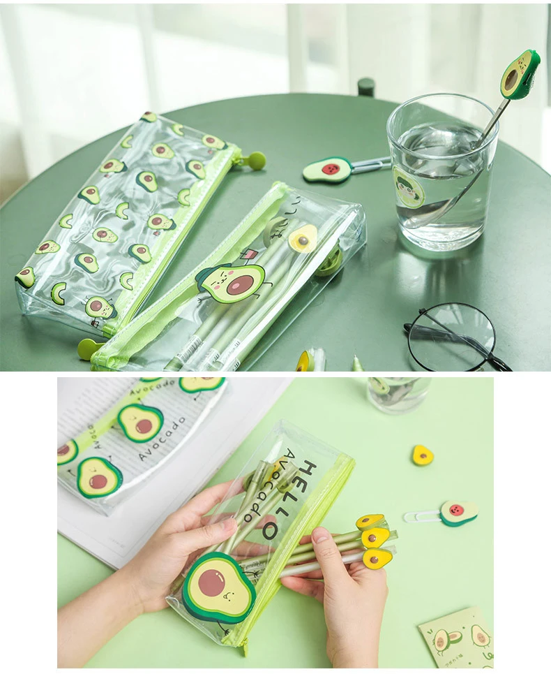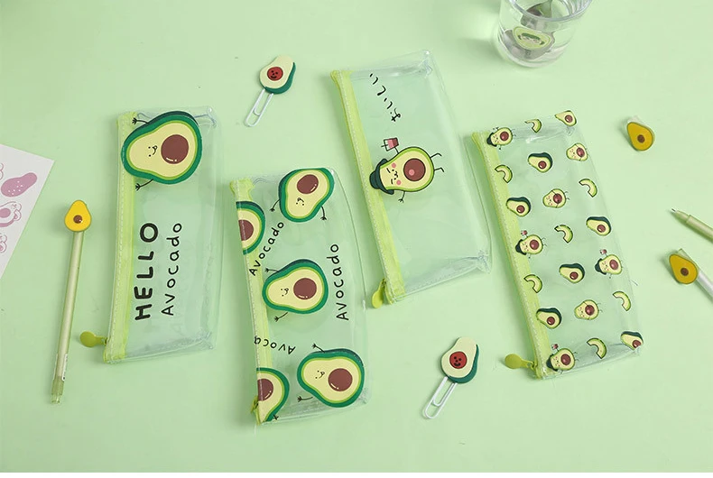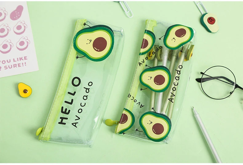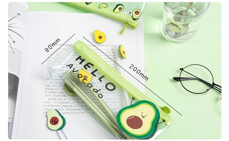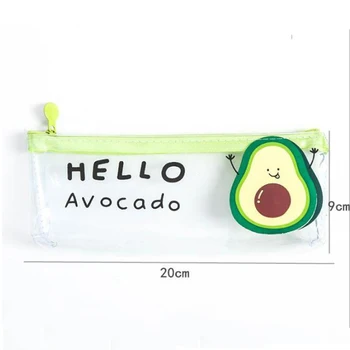 Estuche de lápices de fruta Kawaii para niños, caja de lápices escolar de aguacate lindo, bolsa de lápices transparente, suministros escolares, papelería