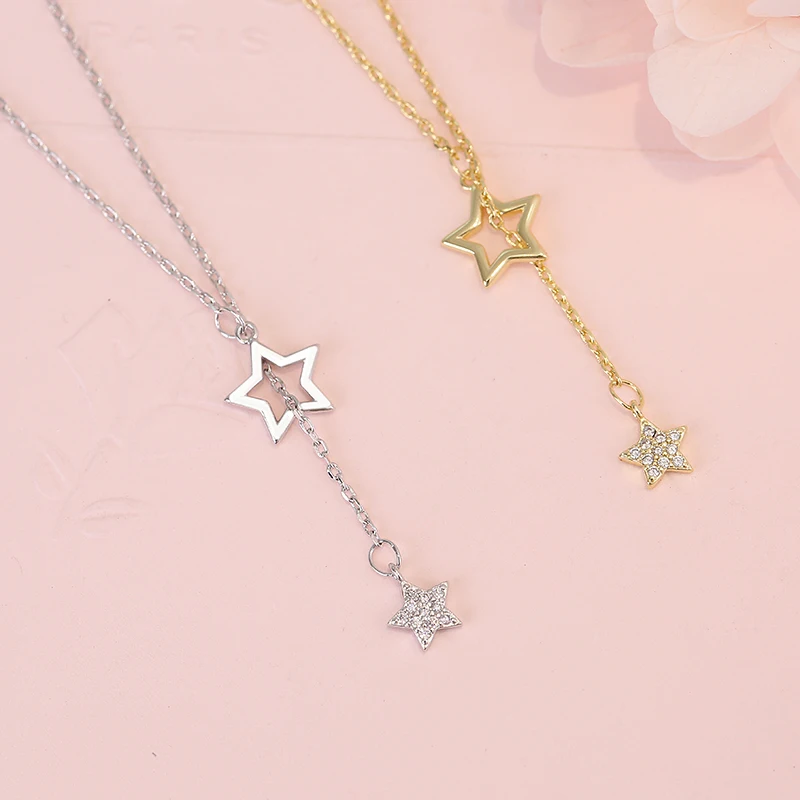 Gargantilla de Plata de Ley 925 para mujer, colgante con forma de estrella brillante, ideal para regalo de Navidad, boda, fiesta de cumpleaños