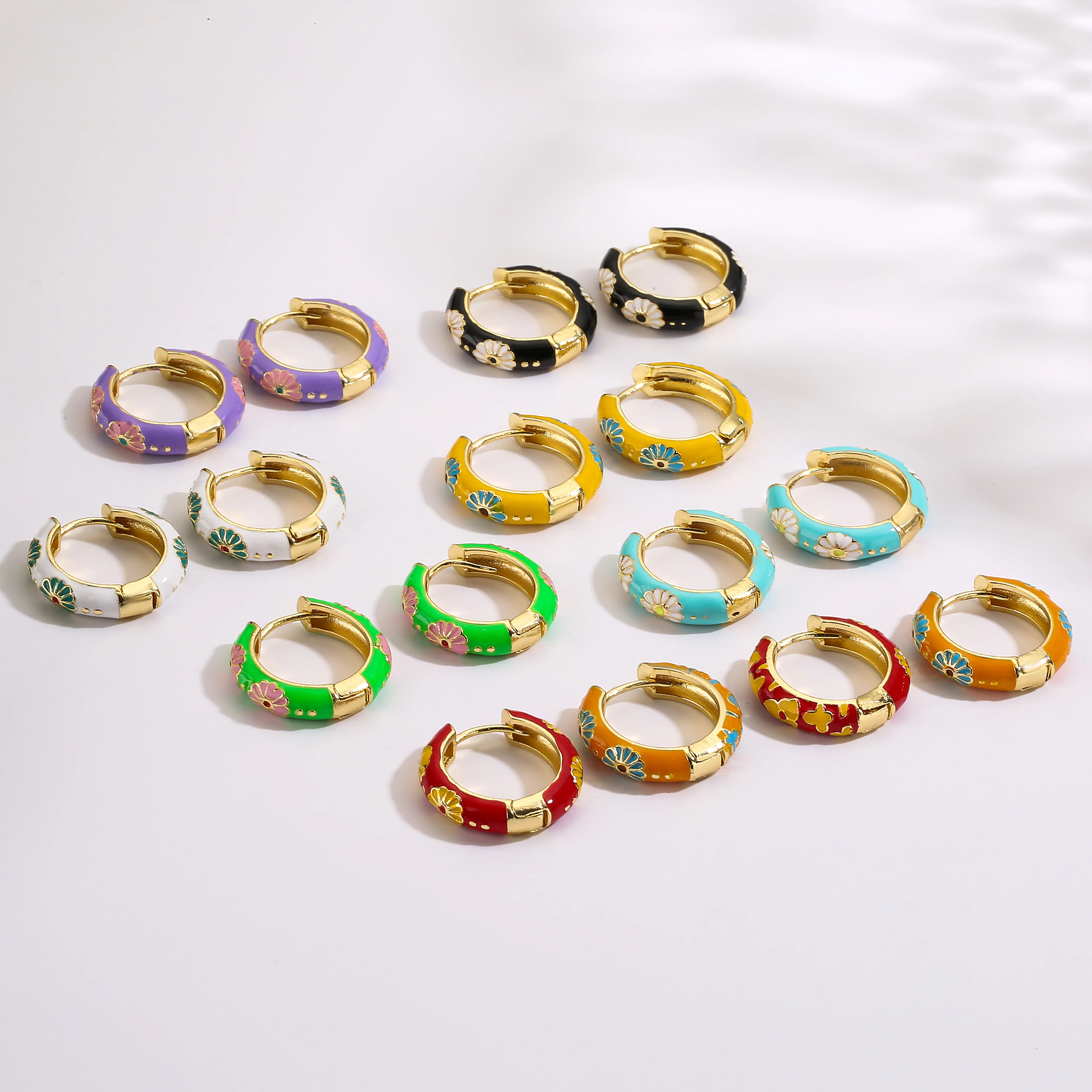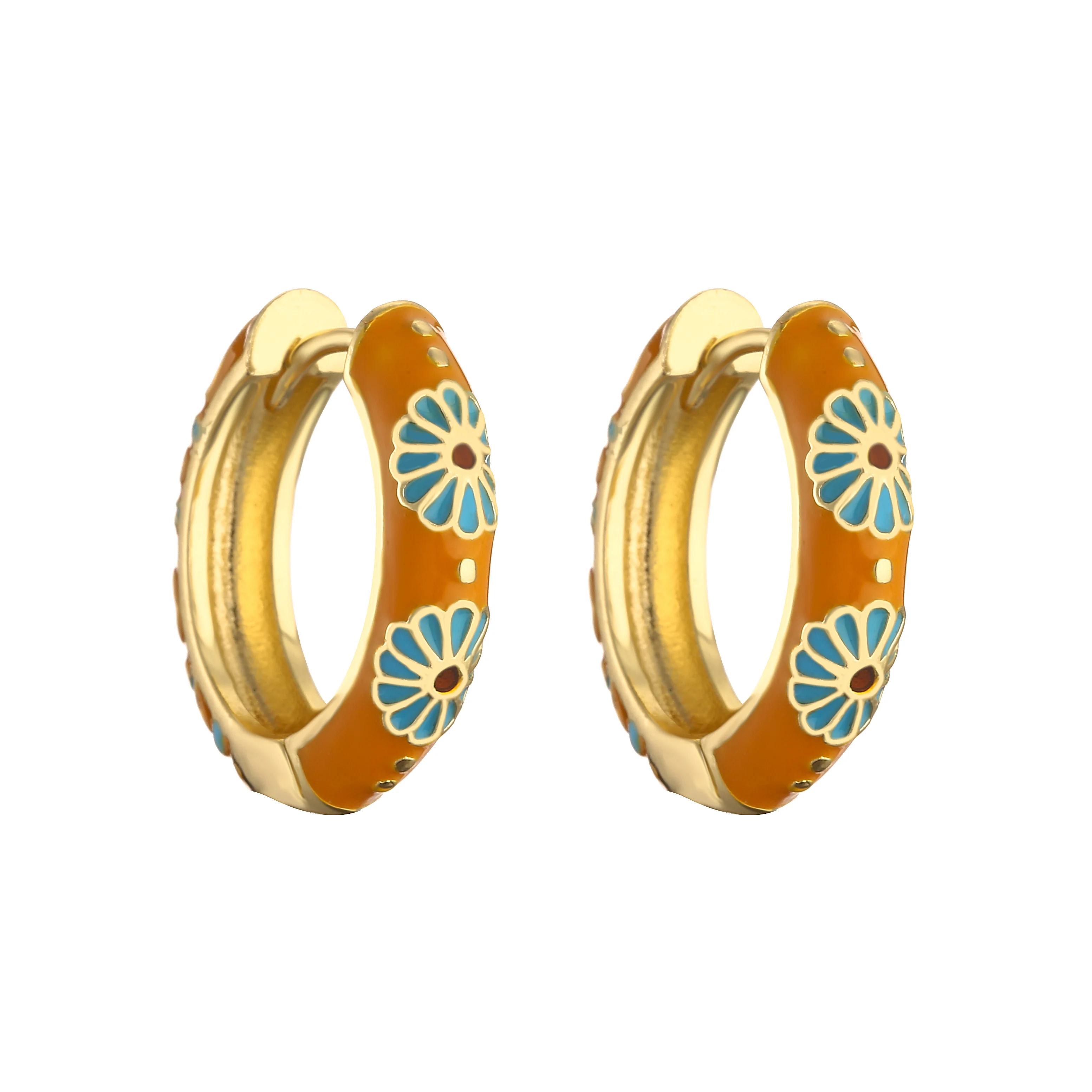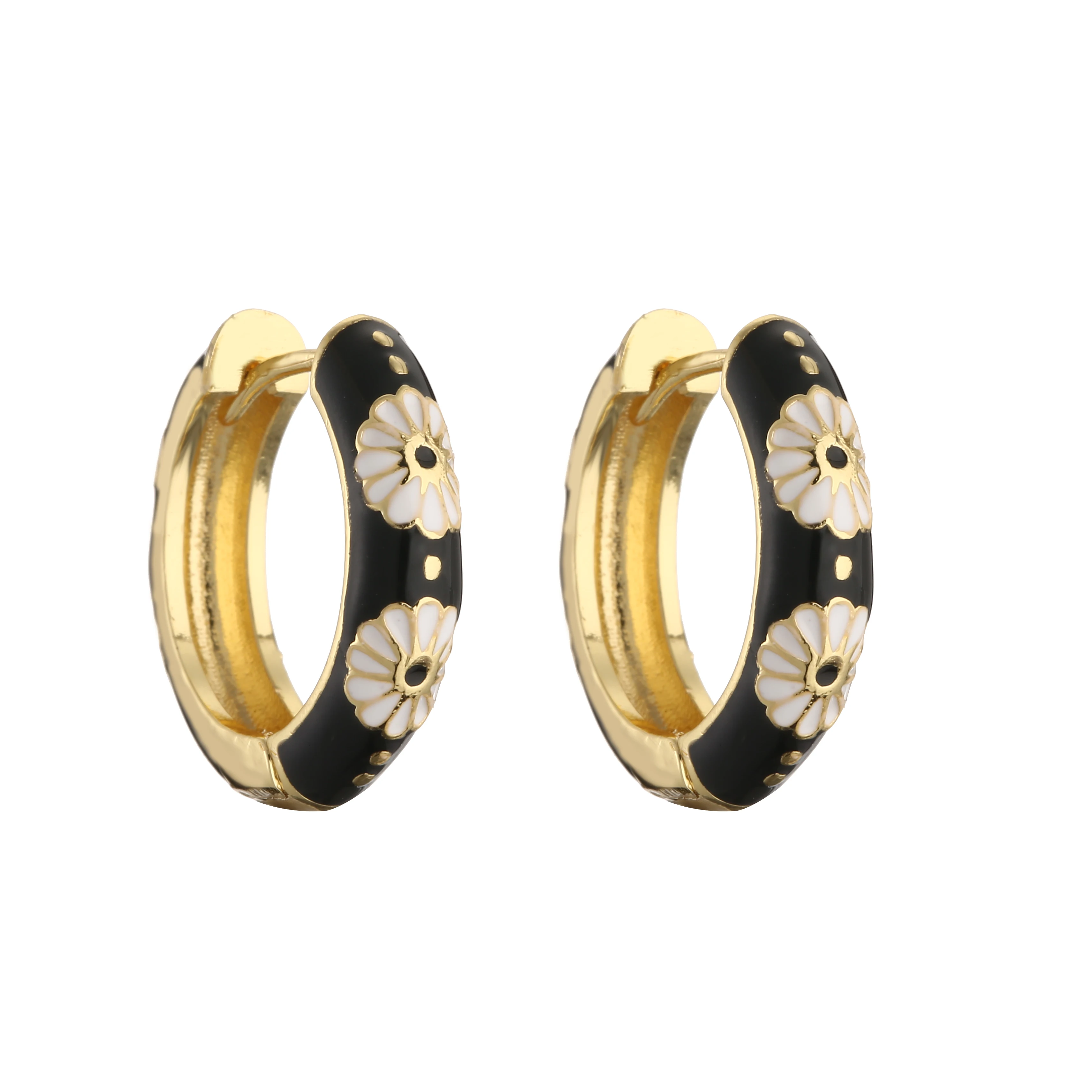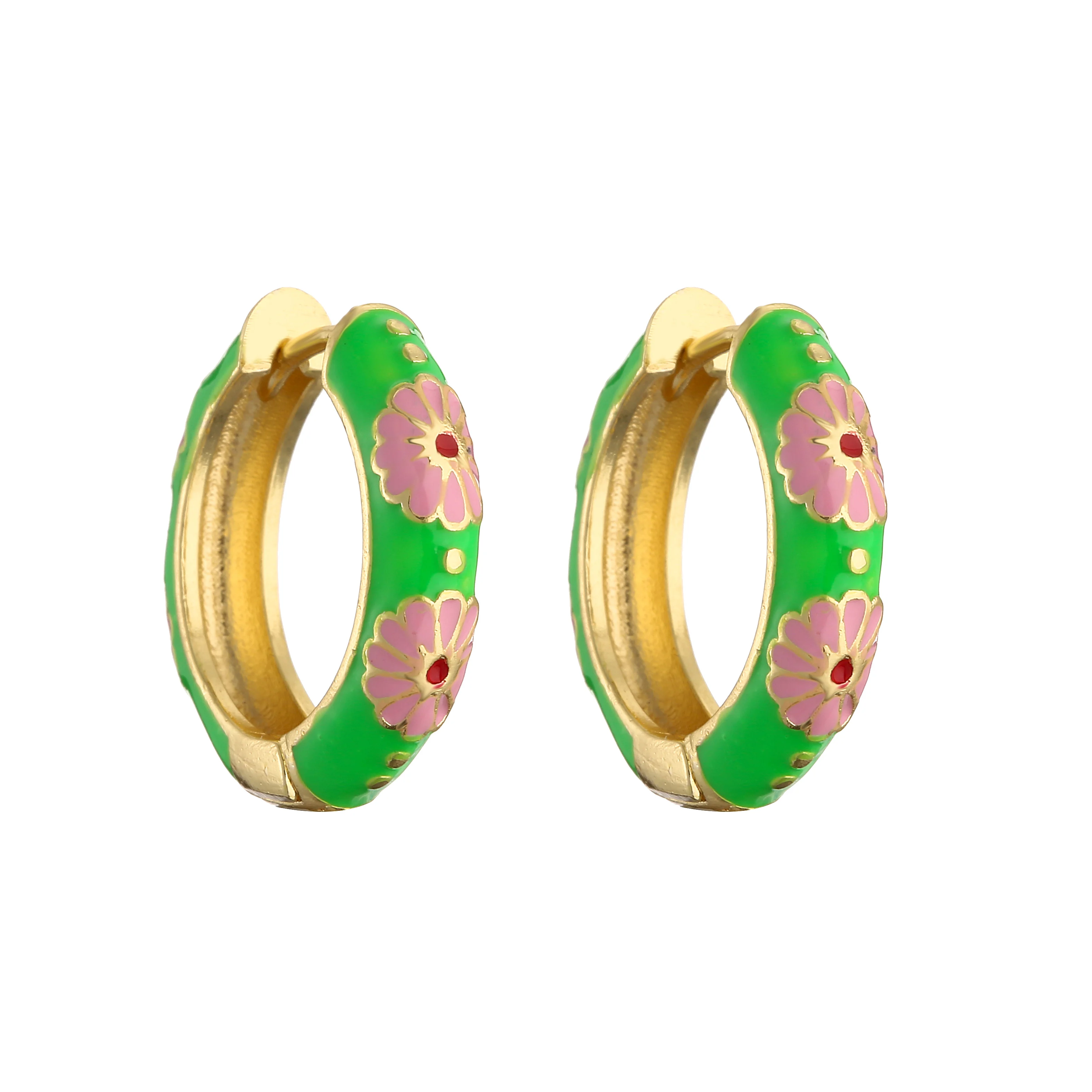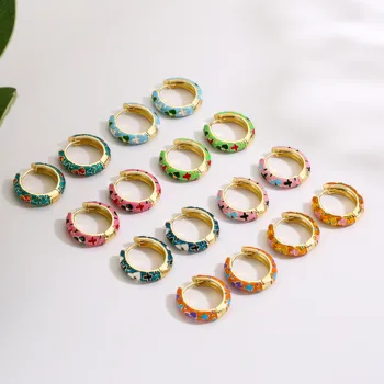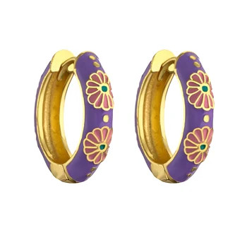 HECHENG-pendientes de aro pequeños de flor de esmalte Vintage, joyería de moda, declaración geométrica, círculo redondo, Huggie, aretes