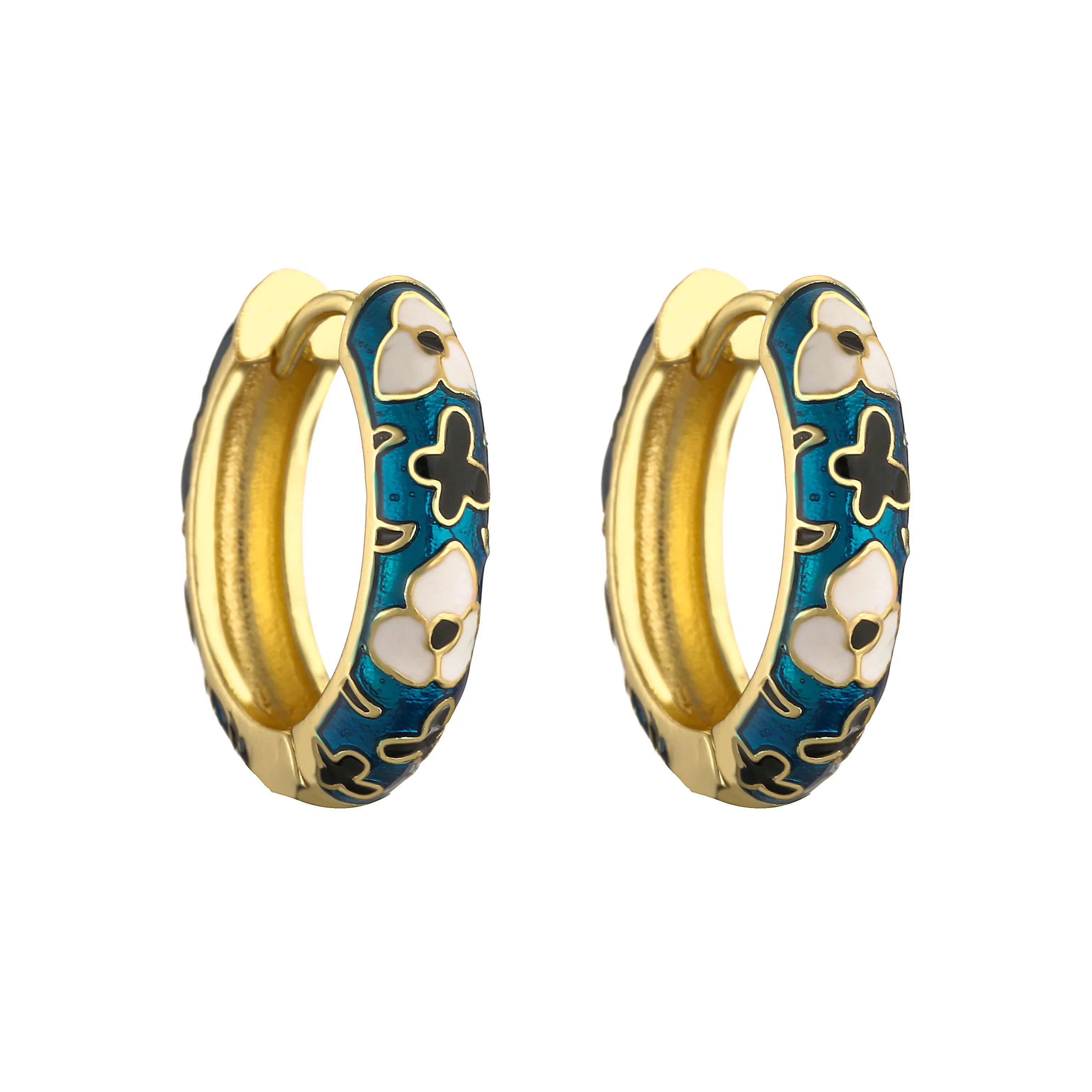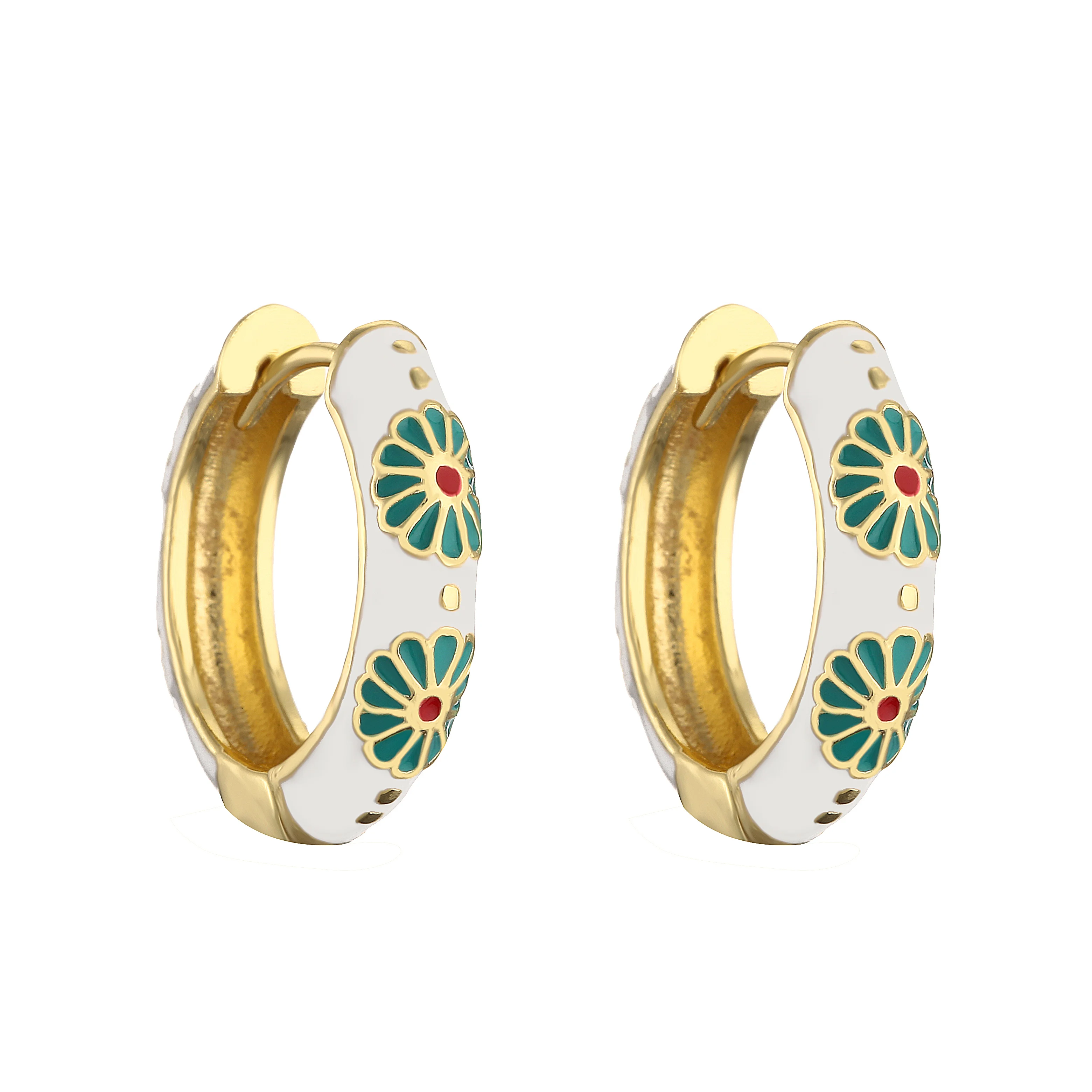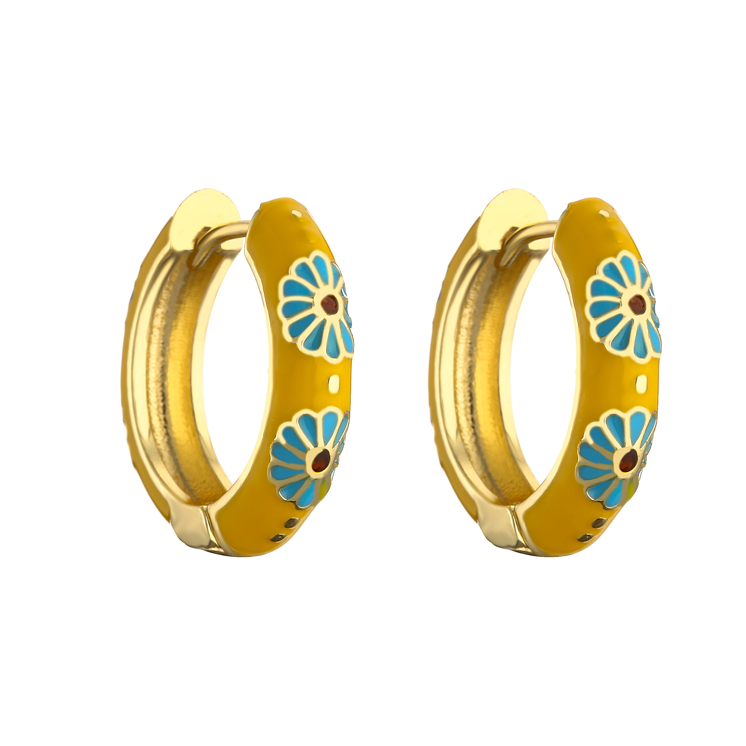 HECHENG-pendientes de aro pequeños de flor de esmalte Vintage, joyería de moda, declaración geométrica, círculo redondo, Huggie, aretes