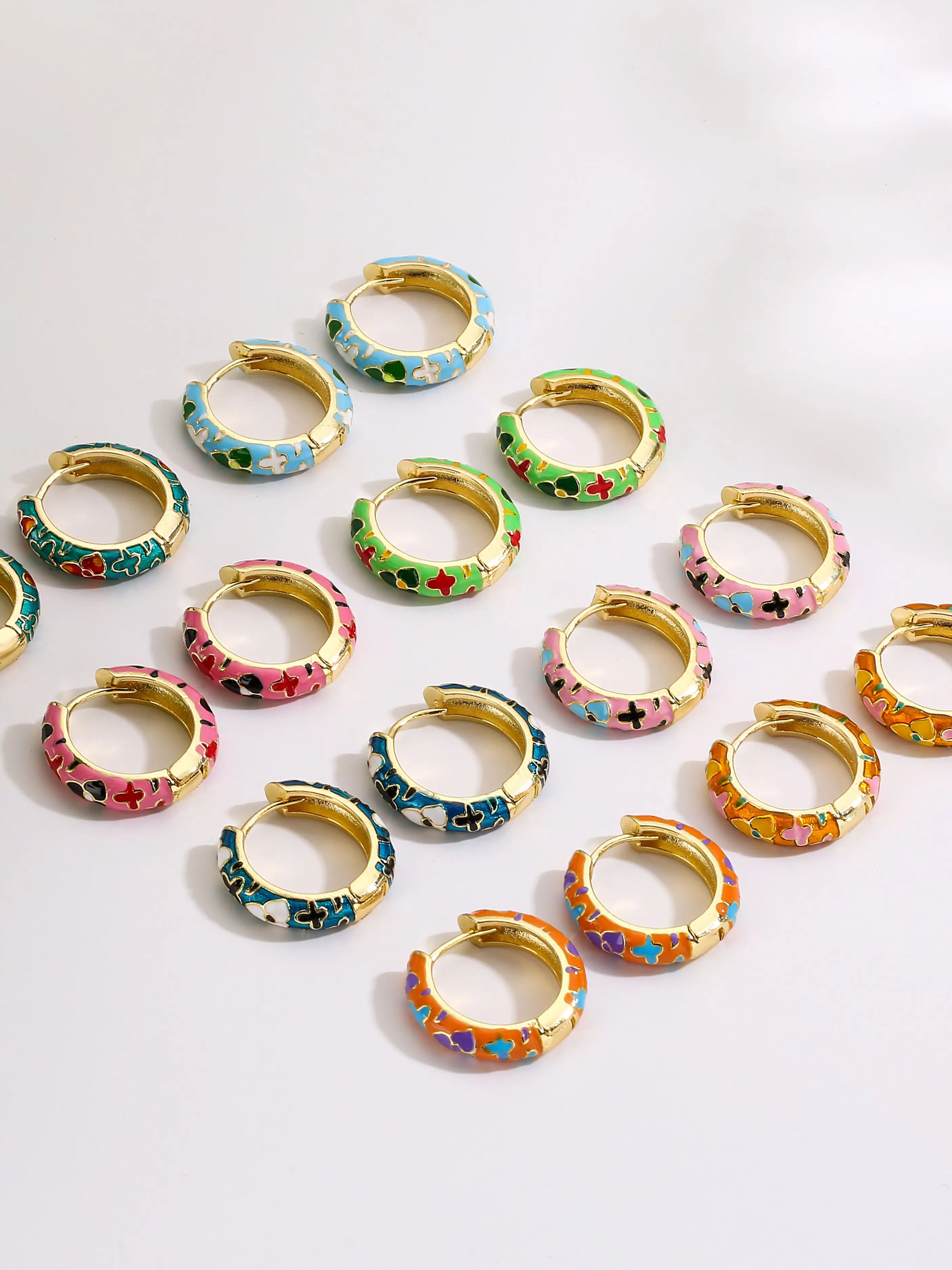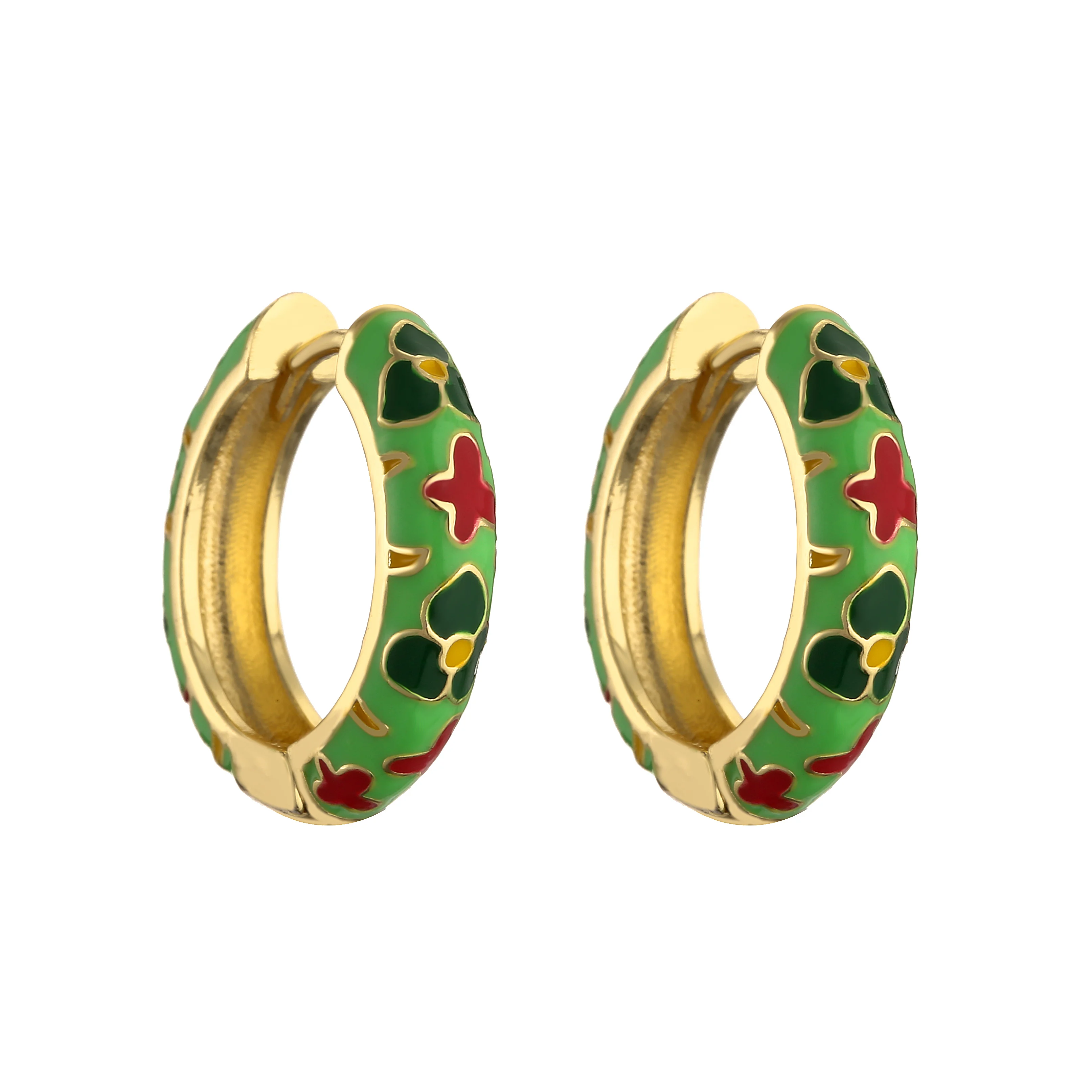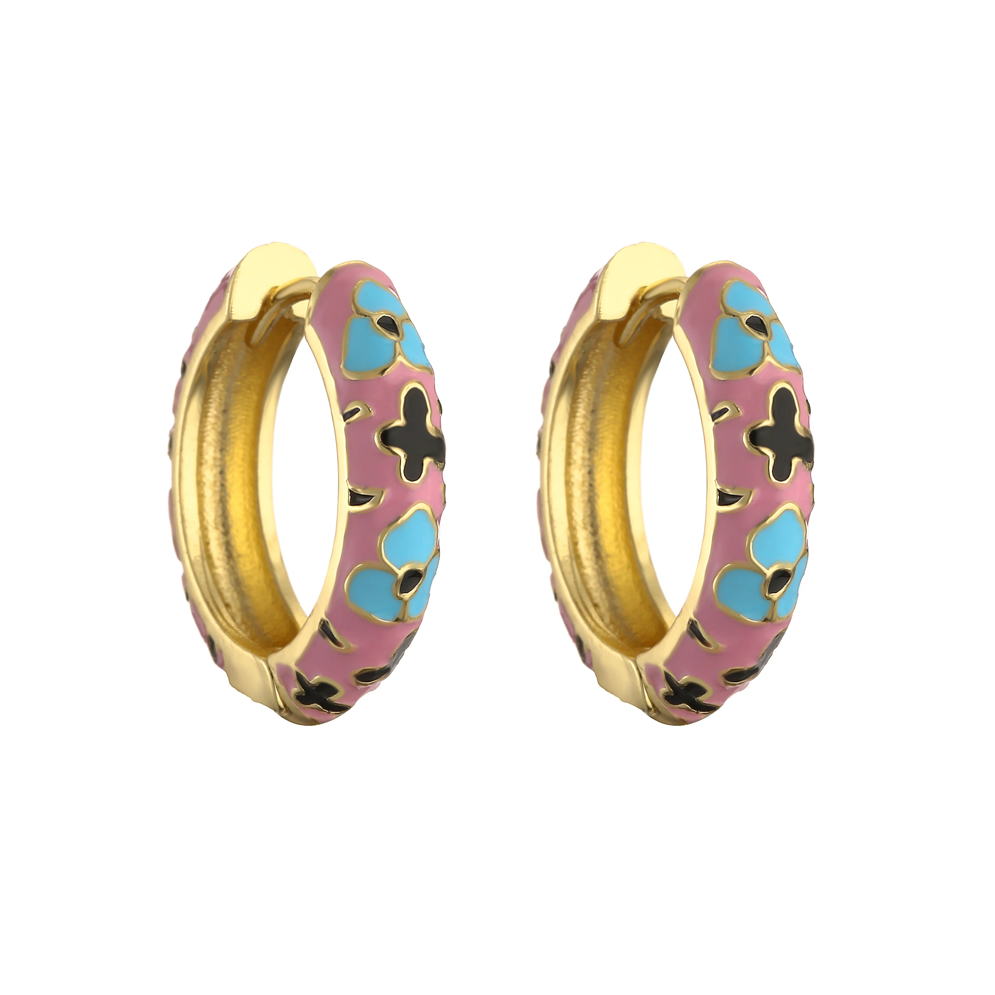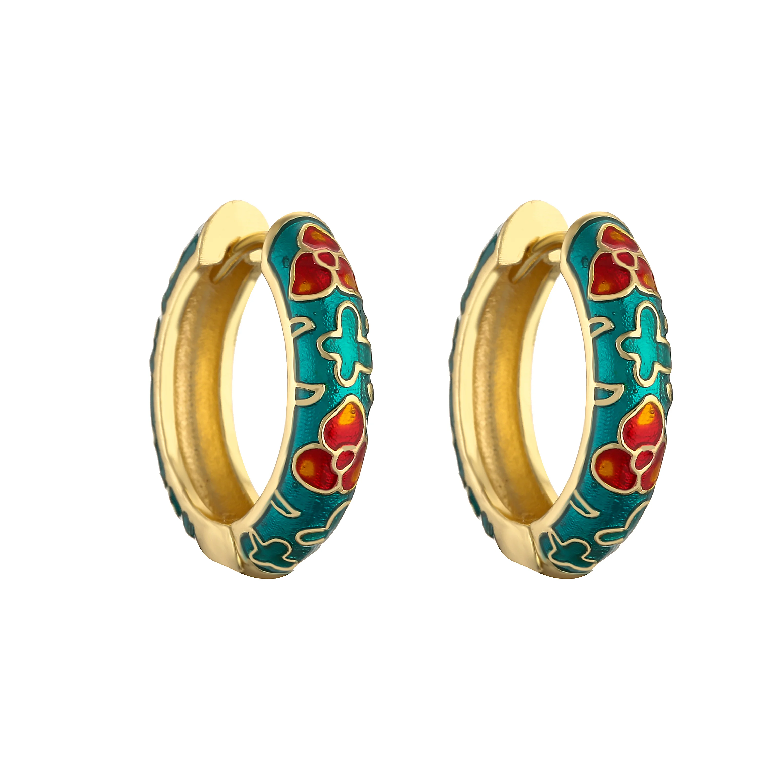 HECHENG-pendientes de aro pequeños de flor de esmalte Vintage, joyería de moda, declaración geométrica, círculo redondo, Huggie, aretes
