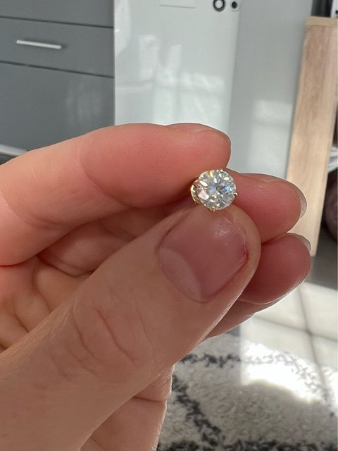 Moissanite de alta calidad, con oro real de 10k. Lo puse con mi rueda profesional de pulido de joyas, también lo he mojado para ver si se empañará negro; Digamos que es perfecto. ¡Gracias por tu honesta lista!