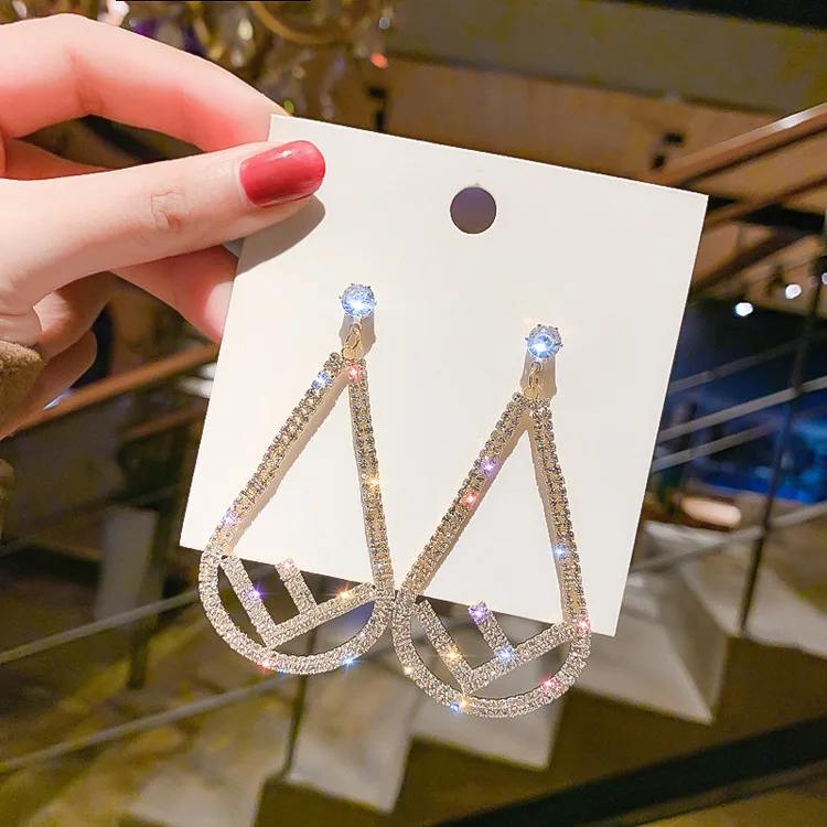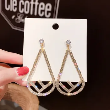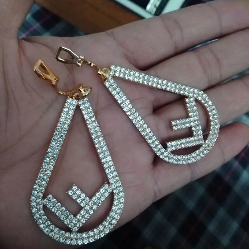 JIOFREE-pendientes largos con diamantes de imitación para mujer, aretes sin Piercing, Clip para oreja, joyería