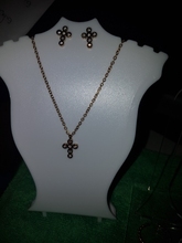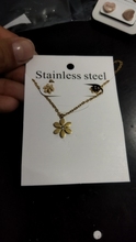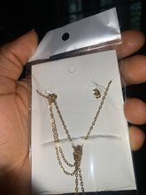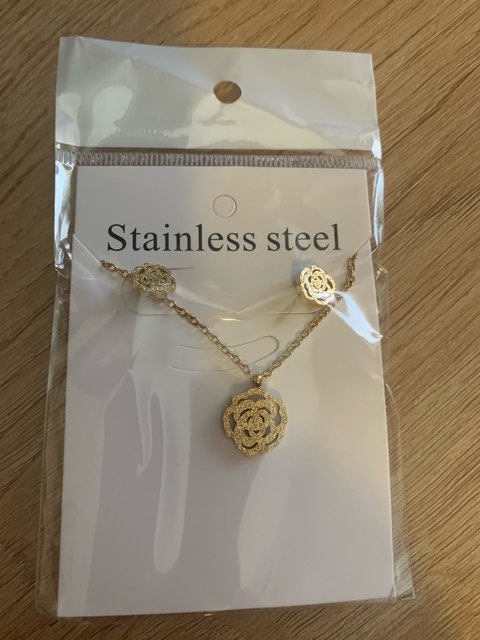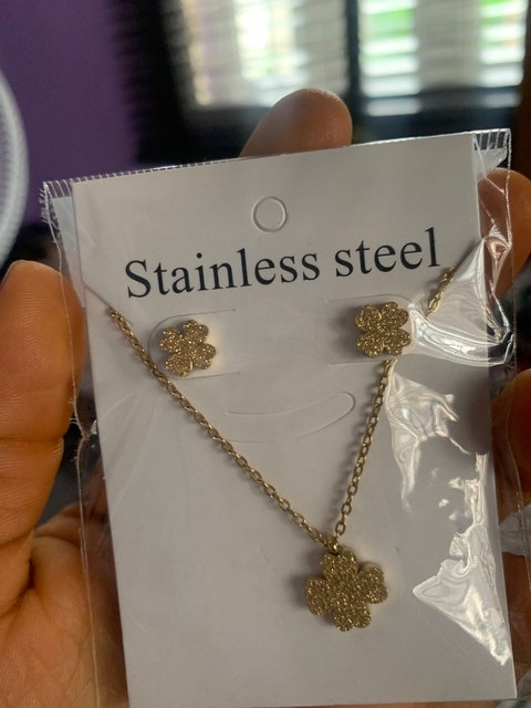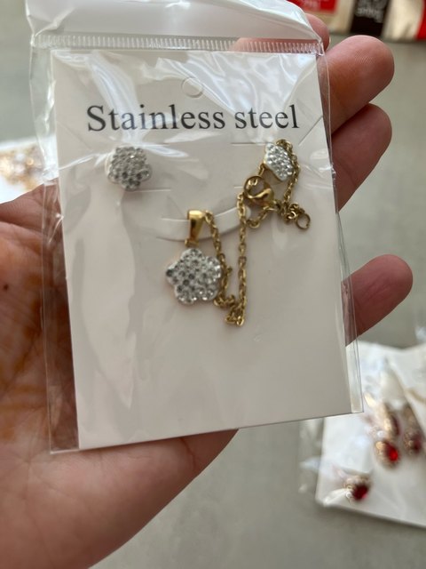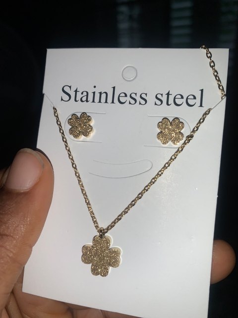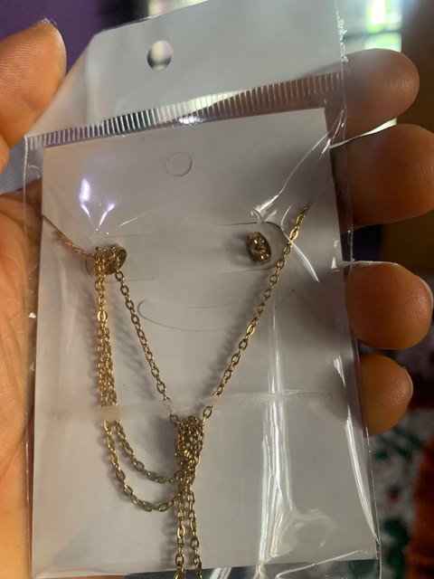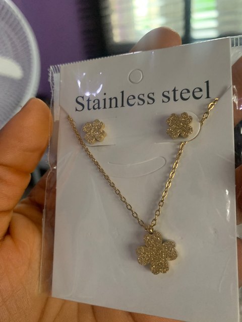 El conjunto de collar y aretes es bastante, el producto llegó a tiempo e intacto, recomiendo al vendedor.
