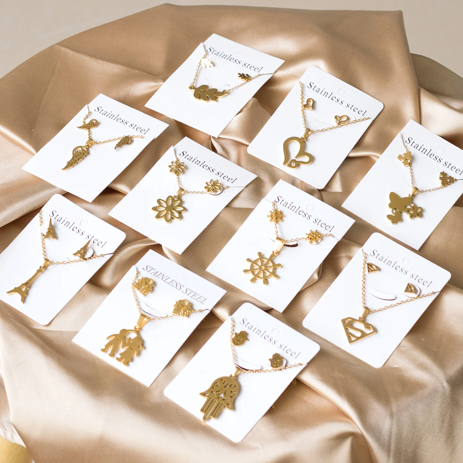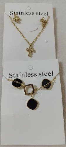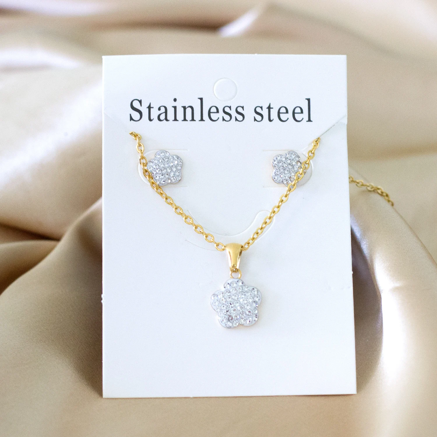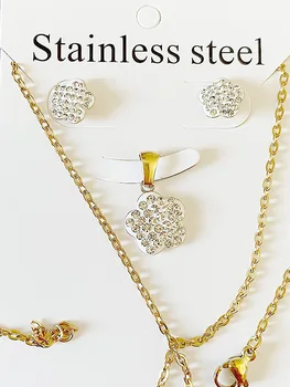 joyeria coreana bisuteria de acero inoxidable mujer collar niña bisutería fina de alta calidad accesorios acero inoxidable mujer pendientes acero inoxidable mujer de flores Collar Cruz Juegos Pendientes