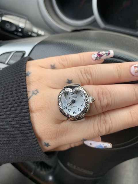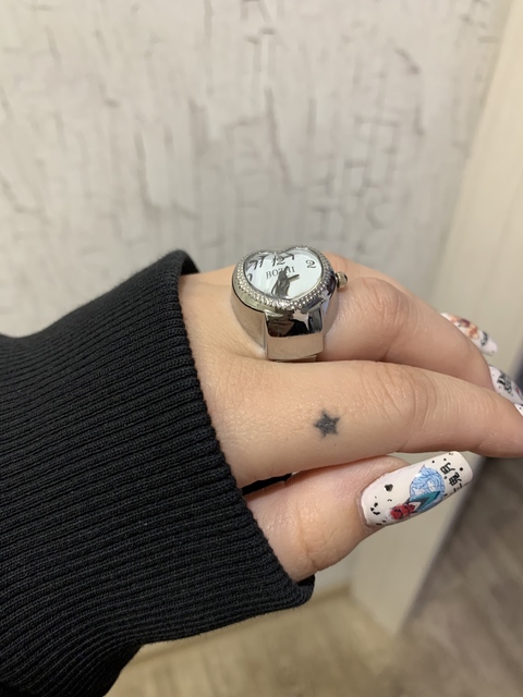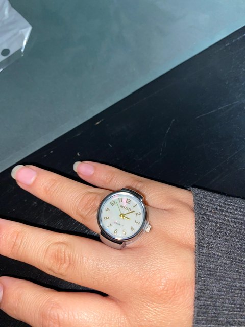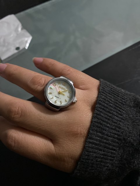 ¡El anillo es ajustable (incluso en los pulgares se puede poner Y será bueno no presionar demasiado)! ¡Muy bonito y el reloj se puede personalizar!